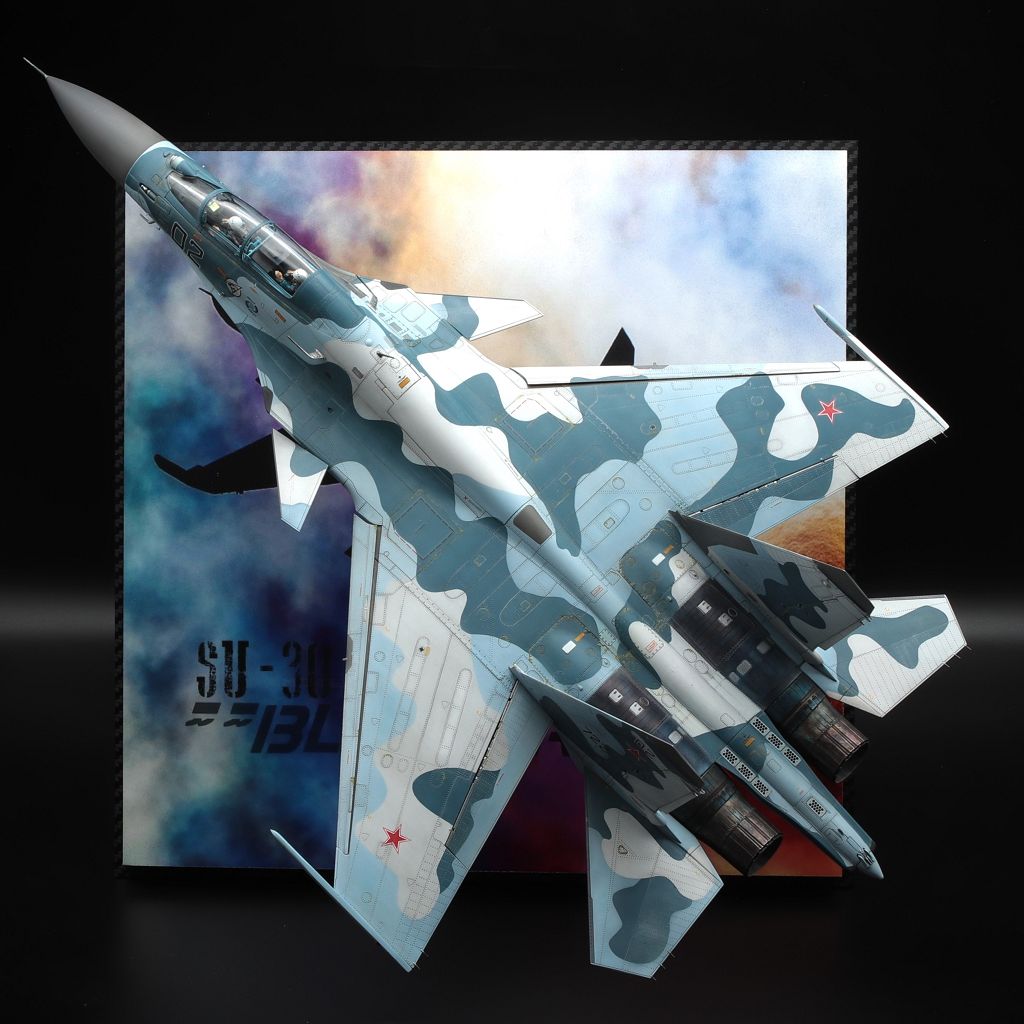 Der Su-30 MKI Demonstrator wird umgangsprachlich BLIZZARD genannt. Die auffällige Lackierung entstand anlässlich der Rüstungsmesse MAKS in 2001.Der Buasatz stammt von Kitty Hawk und wurde durch selbsterstellte Masken, Decals von Begemot, Pilotenbesatzung von Quickboost und Resin Triebwerksdüsen von Reskit ergänzt.Da es sich um eine Vorführmaschine handelte, blieb das Modell komplett ohne Bewaffnung – wie das […]