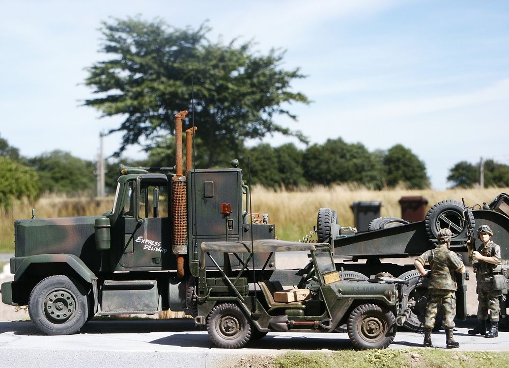 Dieses Diorama stellt eine Szene aus der NATO-Übung ReForGer 1988 dar und zeigt den vielseitigen Materialeinsatz der US Armee während eines Truppenverlegungsmanövers. Im Mittelpunkt steht ein Panzertransporter mit zwei aufgeladenem M113 Mannschaftstransportpanzern – ein Modell stammt von Tamiya und wurde als Flakpanzer mit einer 20mm Revolverkanone von Verlinden versehen; der andere von Academy mit geringfügigen […]
