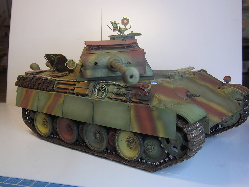 Der Panther im Maßstab 1/35 ist Endlich fertig. Der Grundbausatz wurde mit dem Set von Rye Field zum Infrarot. Panzer umgebaut. Weiter verbessert mit Ätzteilen von ET, Voyager und Aber. MG Läufe ebenfalls von aber. Ketten von Friul. Lackiert mit den Neuen Atom Farben von Ammo. Text und Bilder Chris Frankenstein