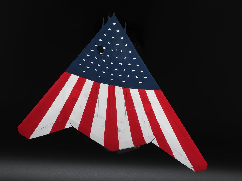 In diesem Projekt diente die Nighthawk als Test für eine Jubiläumslackierung – inklusive eines markanten Sternenbanners auf der Unterseite. Ein mutiger Stilbruch, der dem kantigen Tarnkappenflieger eine völlig neue visuelle Dynamik verleiht.