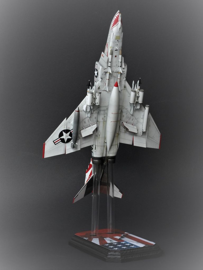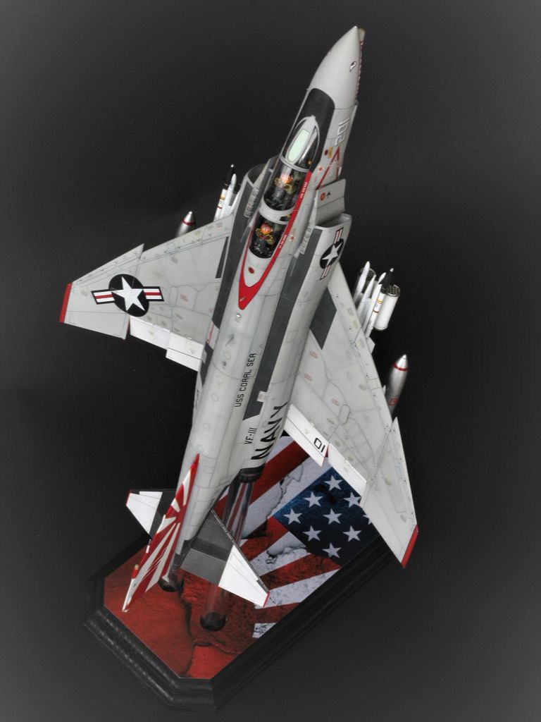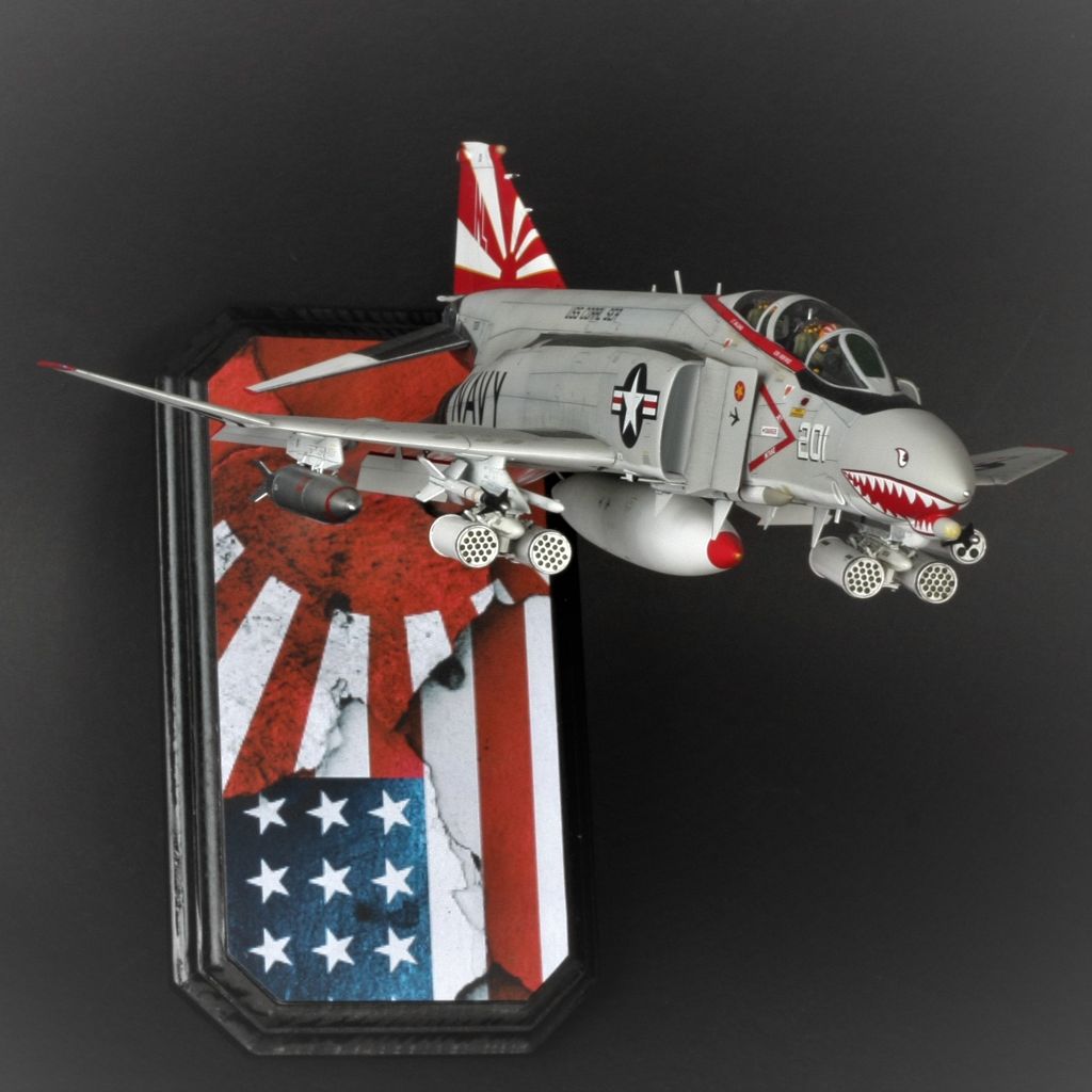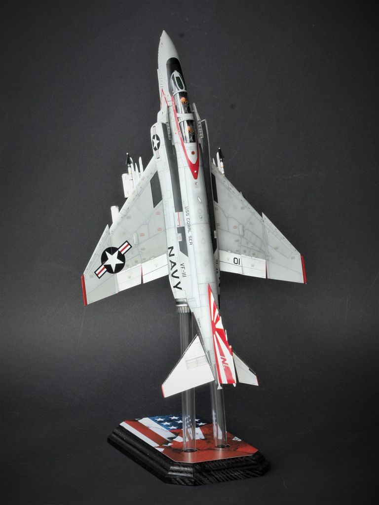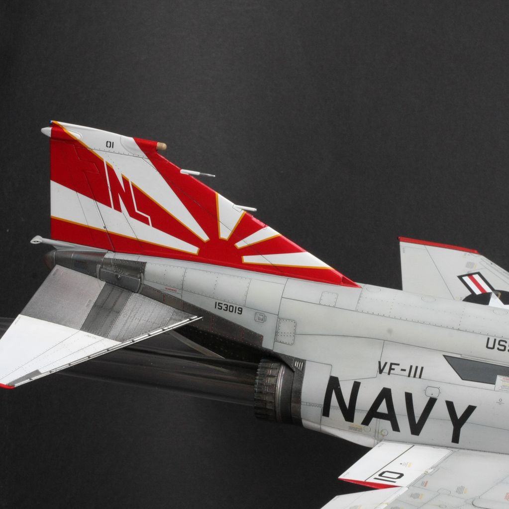 Das Modell erhielt die auffällige VF-111 „Sundowners“-Lackierung mit rotem Leitwerk und markanter Sonnen-Grafik. Ein echter Blickfang, der die ohnehin kraftvolle Silhouette der Phantom noch einmal unterstreicht.